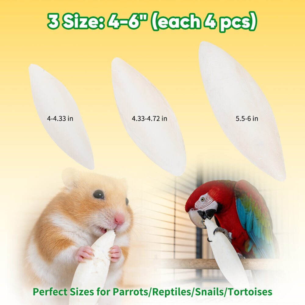 - 12 Pack & Perfect Size: Comes with 12 pieces of cuttlebones, each measuring 4-6 inches. The varied size fits different pets, birds, parrots, budgies, parakeets, canaries, turtles, and other small animals, keeping them active and healthy.