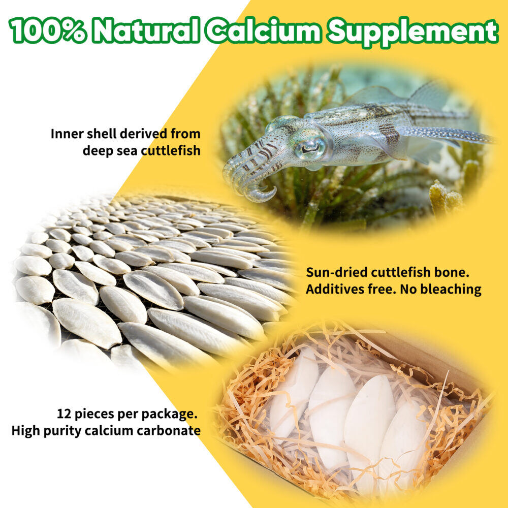 - 100% Natural & Pure: Made from 100% natural cuttlefish bone, a premium source of calcium and minerals for pets. Our cuttlebones are processed by sun-drying without any additives, preservatives, or artificial ingredients.