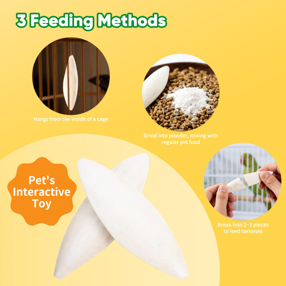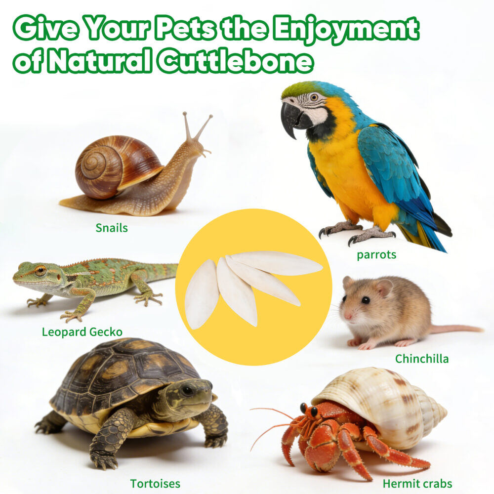 - Calcium Supplement:Rich in calcium and essential trace minerals, cuttlebone supports strong bones, vibrant feathers and healthy eggshell formation for birds,also effectively preventing shell softening in turtles.